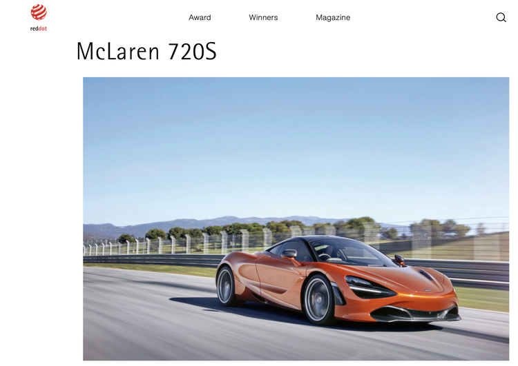 凭借前卫的外观设计和极致性能表现,迈凯伦720S一经推出便在全球斩获无数奖项。例如《TopGear》媒体颁发的2017年度最佳超级跑车,纽约国际车展评选的2019年度最佳高性能车型等。而除了汽车类专业奖项,设计类大奖也不缺席,2018年就容摘最具声望的红点设计大奖,这在超级跑车领域也是独一档的存在。