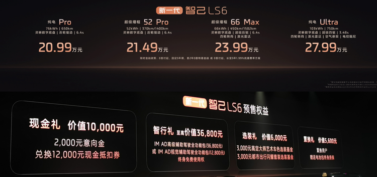 对比产品价值来看,新一代智己LS6的预售价,有吸引力、有竞争力。不仅纯电版本的预售价较在售车型的价格低,增程版本的预售价较阿维塔07、理想L6、智界R7的也有价格竞争力。而在新车预售发布会上,智己官方还表示,在9月10日上市时,新车正式上市价格可能还有惊喜。