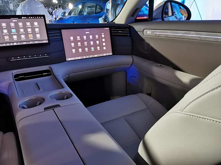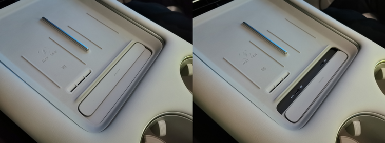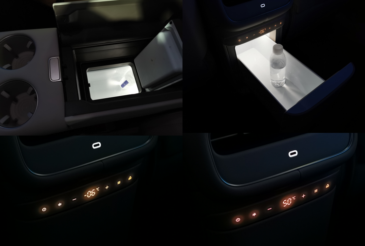 扶手区的冰箱设计可以被好评。除了有11L的容积、-6℃—50℃的温控范围外,它还有“双开门”设计,可以从扶手箱打开,也可以从面弹开,分别方便前排和后排的乘客。不过,不可以同时开这两个“门”,大家可以想想为什么。