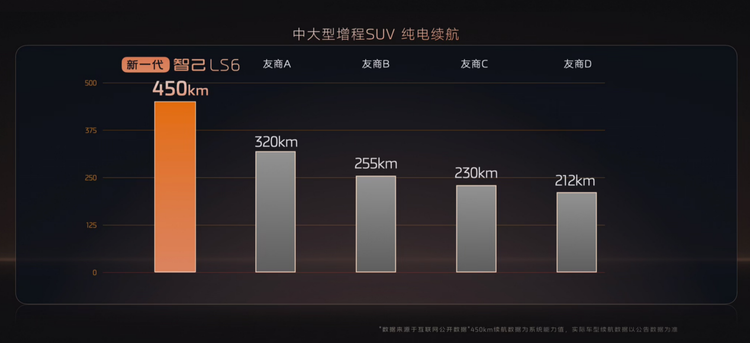 这表明,智己LS6增程版的纯电续航已远高于在售增程车的纯电续航,甚至已经和一些纯电车的都差不多了。这还意味着,智己LS6增程版几乎可以真的被当作纯电车来开,解决了用户关于增程车纯电续航短的痛点,对于不方便装充电桩的用户尤为有用。