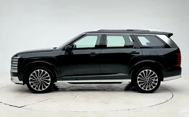 全新帕里斯帝在外观呈现上的差异,堪称宣传与实际之间的典型反差。官方渲染图中,它展现出一种“硬朗绅士”的气质:垂直瀑布式进气格栅配合锐利的前大灯组,车身线条方正有力,外扩的轮眉彰显肌肉感,颇有几分“韩系揽胜”的韵味。但实车亮相后,却带来了强烈的违和感。格栅的实际尺寸明显缩小,使得车头部分显得不够大气;大灯组的线条变得圆钝,失去了官图中的犀利感;尤其令人遗憾的是侧面比例,过于平直的车顶线条以及从C柱到车尾的生硬过渡,让整车看起来像是被强行拉长的紧凑型SUV,完全丧失了大型SUV应有的舒展气场和视觉张力。