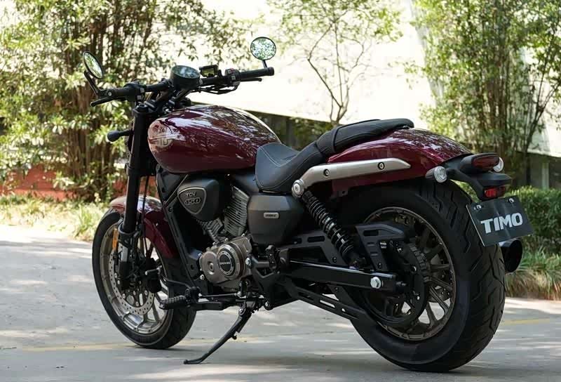 TCV450摒弃了传统美式巡航车的浮夸装饰,以凌厉线条与简约轮廓构建出独特的东方实用美学。宝石红、金属黑、塔夫绸白等六款配色方案,覆盖运动、商务、复古多场景需求。值得玩味的是,其外观设计暗含空气动力学考量——车头导流罩与油箱线条的协同设计,在高速巡航时能降低15%的风阻系数。