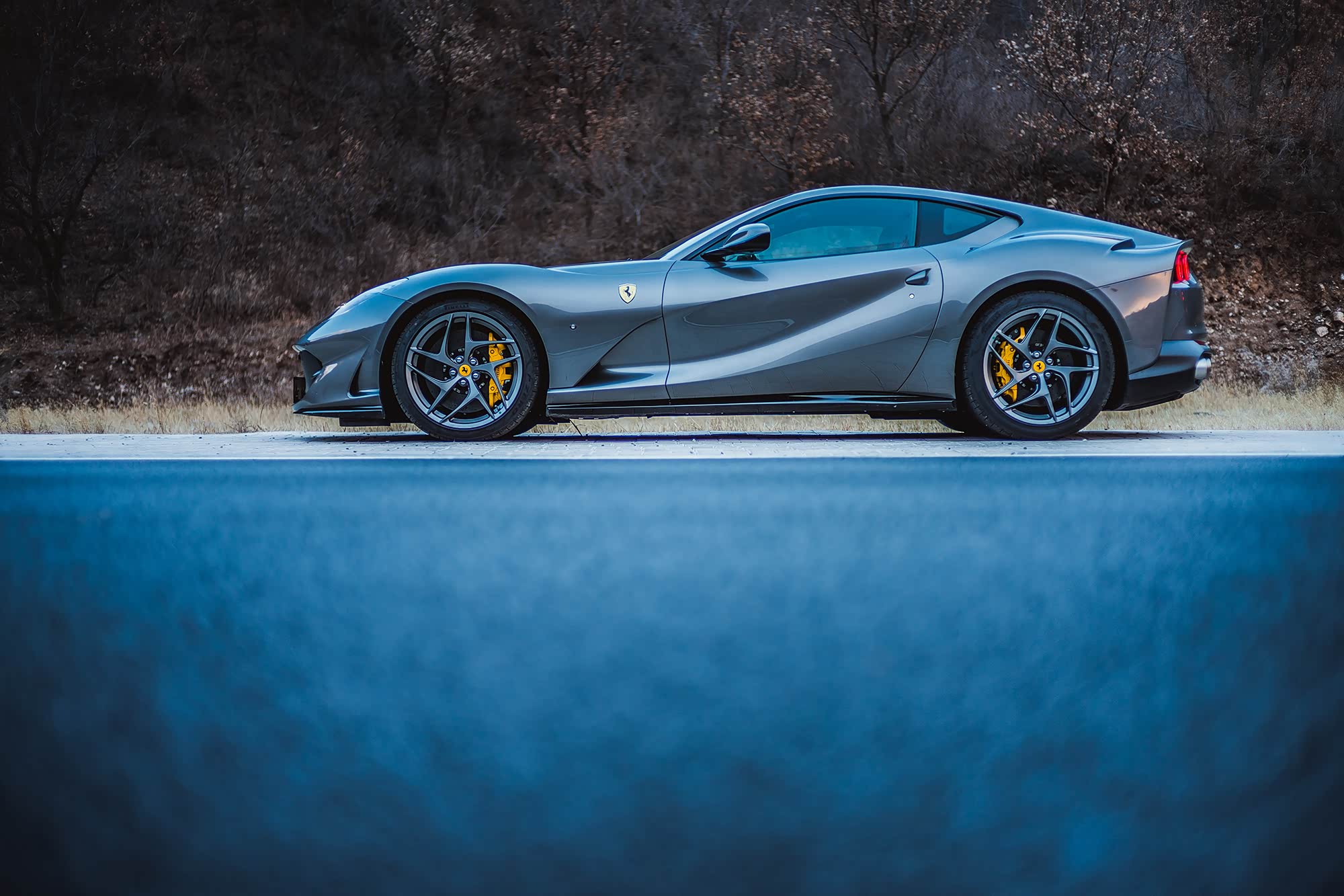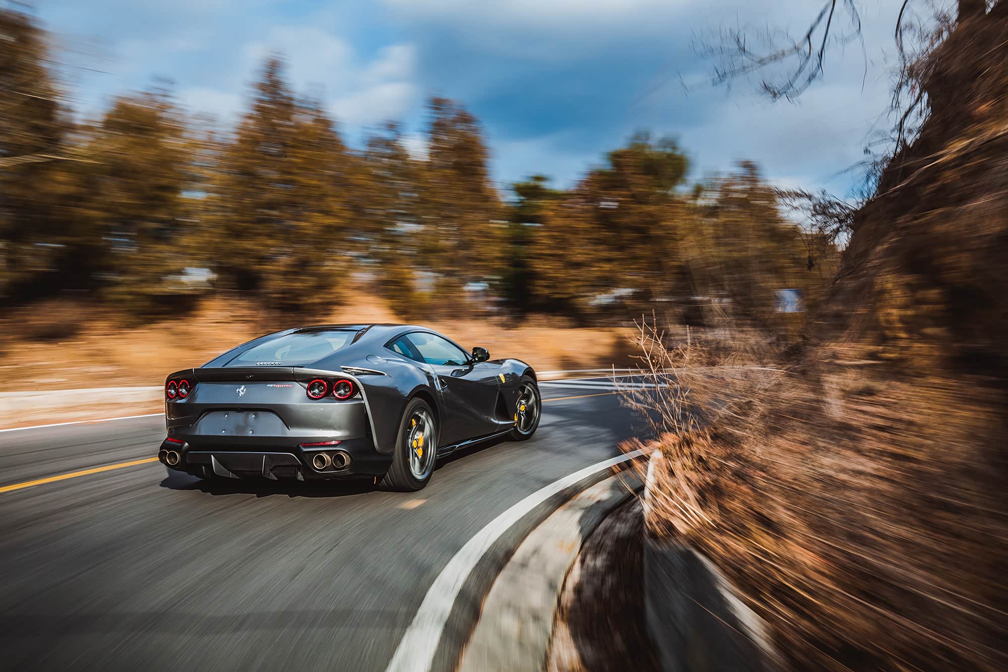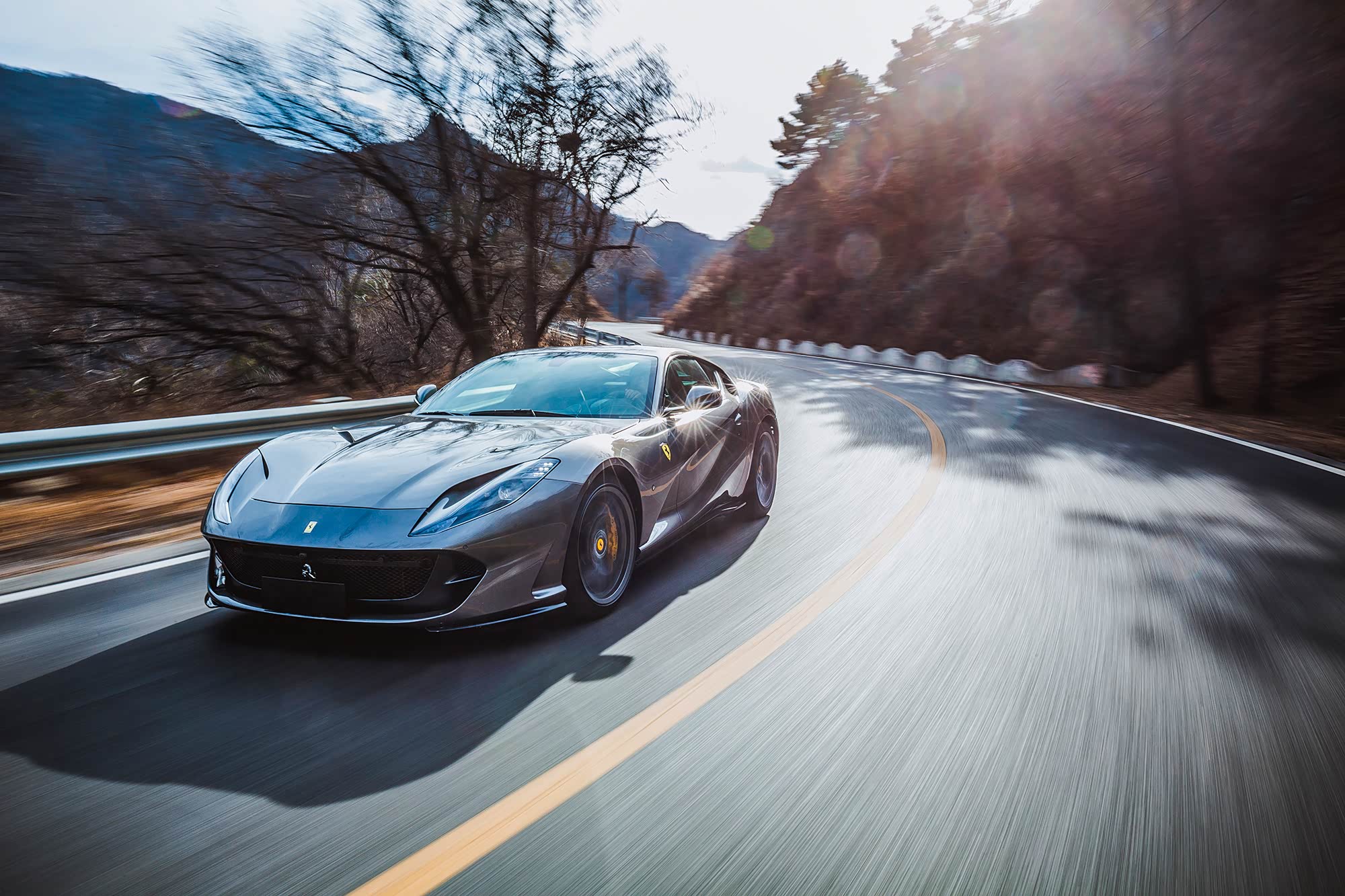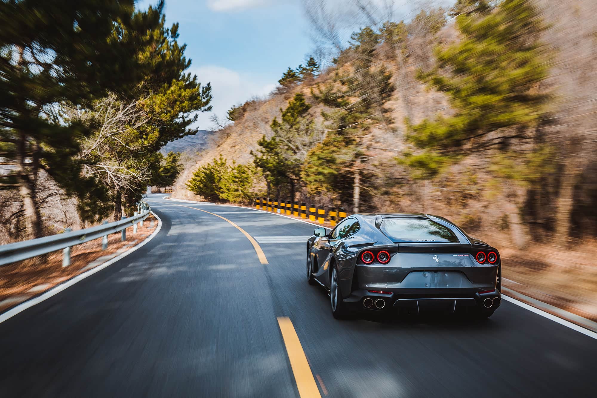 去往山路的途中必须要先在城市环路的车流中穿梭,再走一段无聊的高速公路,如此温顺的对待812 Superfast似乎让我很不甘心,抓住机会超个车,一脚油门下去,哦,不,根本用不到一脚,半脚多已经足以让变速箱在电光火石间完成7到3的降挡动作,伴随着耳边的轰鸣和车尾略有不安的躁动,时速已经瞬时达到限速值,至于刚才超过的车,早已在身后远远的位置。