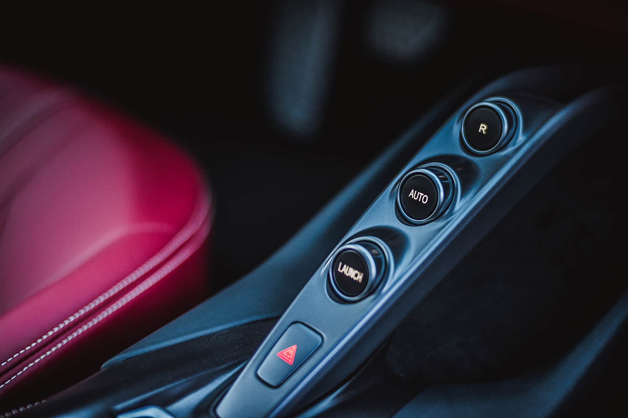 其实法拉利的内饰大体上来说都差不太多,因为一切都是为了让驾驶者专注于驾驶而设计的,所以在中控台上没有那么多花样,重点都在驾驶者的正前方。打孔真皮+碳纤维材质的方向盘无论在样式上还是手感上都是极好的,跟驾驶相关的绝大部分操作都可以通过方向盘上的按钮完成,仪表盘两侧是液晶屏,可以显示多种数据,而正中间则是一个表头10000转的转速表,我相信看着它没人能忍住不去挑逗油门让转速飞速攀升。