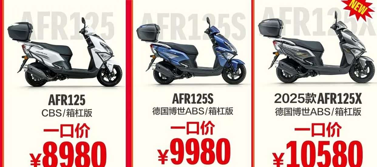 在价格这件事上,豪爵AFR125玩出了新花样,搞出了个三阶定价策略。CBS版只要8980元,S版9980元,X版10580元。乍一看,X版比之前还涨了600元,这不是反其道而行之吗?但您仔细瞧瞧,这涨价背后可是藏着满满的配置升级呢。就说博世第10代单通道前轮ABS,在X版和S版上都是标配,还有欧司朗定制双瞳透镜大灯、全新VA彩屏仪表,这些可都是真金白银的提升啊。