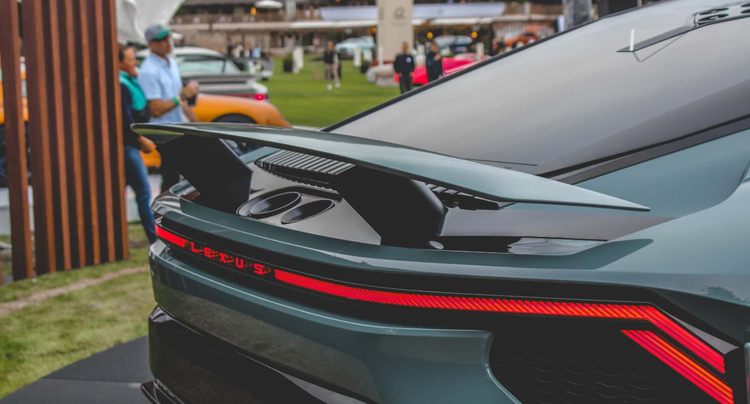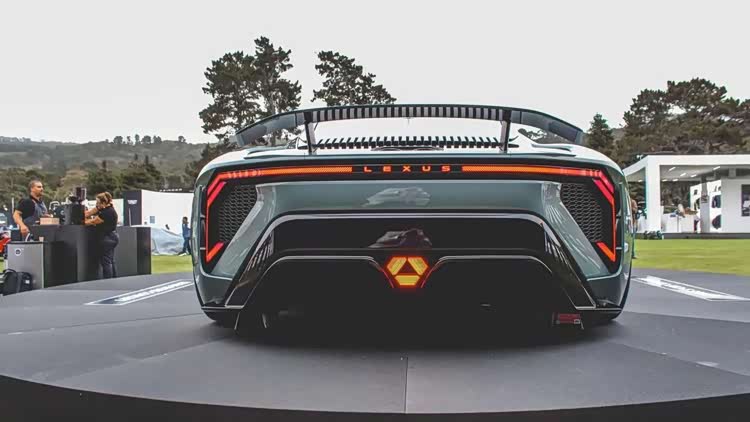 车尾的亮点也不少,采用了贯穿式的LED尾灯,中间嵌着能发光的雷克萨斯标志。那个超大的主动式扰流尾翼,车跑快了能自己调角度,给车尾加挺大的下压力,让车跑起来稳稳的。后保险杠那儿的大扩散器,再配上中间F1风格的刹车灯,赛车那股劲儿直接拉满。值得说的是,这车的排气设计跟迈凯伦有点像,是往上开的,还巧妙地藏在尾翼下面,这么设计,既够运动,又让车尾看着更简洁好看。