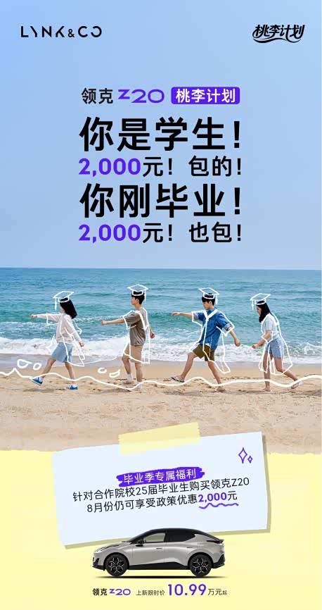 除了安全性能,领克Z20还深知年轻消费者的经济压力,因此在购车政策上给出了极大的诚意。针对合作院校的25届毕业生,8月购车即可享受2000元的专属优惠,这无疑为初入职场的年轻人减轻了不少负担。此外,购车补贴、保险补贴以及旧车置换/增购补贴等多重福利叠加,让购车成本进一步降低。若符合国家以旧换新政策,还能再享最高20000元的补贴,这样的优惠力度在同级别车型中实属难得。金融方案上,领克Z20同样提供了灵活多样的选择。无论是24期8万0息的轻松还款方式,还是60期“0”首付的灵活方案,都能根据个人经济状况量身定制。这样的金融政策,让年轻消费者无需一次性承担过大的资金压力,轻松拥有心仪的座驾。