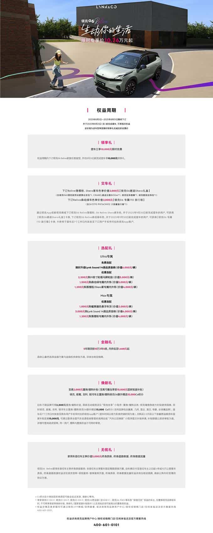 其实对车主来说,一辆车的好,从不是靠花哨参数堆出来的,而是藏在每天的用车细节里。领克 06 Relive 没喊什么宏大的口号,却把大家日常会遇到的小麻烦、小需求都想到了。现在入手领克 06 Relive还有限时专享价 10.76 万起的购车政策,不过比起价格优惠,更值得关注的是,这个价位能买到一辆真正贴合日常的车。它不会让你在用车时频繁妥协,反而能让每一次出行都更顺畅、更舒服,这份藏在细节里的出行幸福感,才是领克 06 Relive给车主最实在的利好。