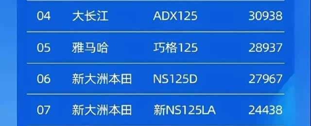 另外在前10排名中豪爵的ADX125位居第五,单月销量为5968辆,排名第九的VH125为3375辆。凭借这三款车型豪爵轻松拿捏125踏板车头把交椅。