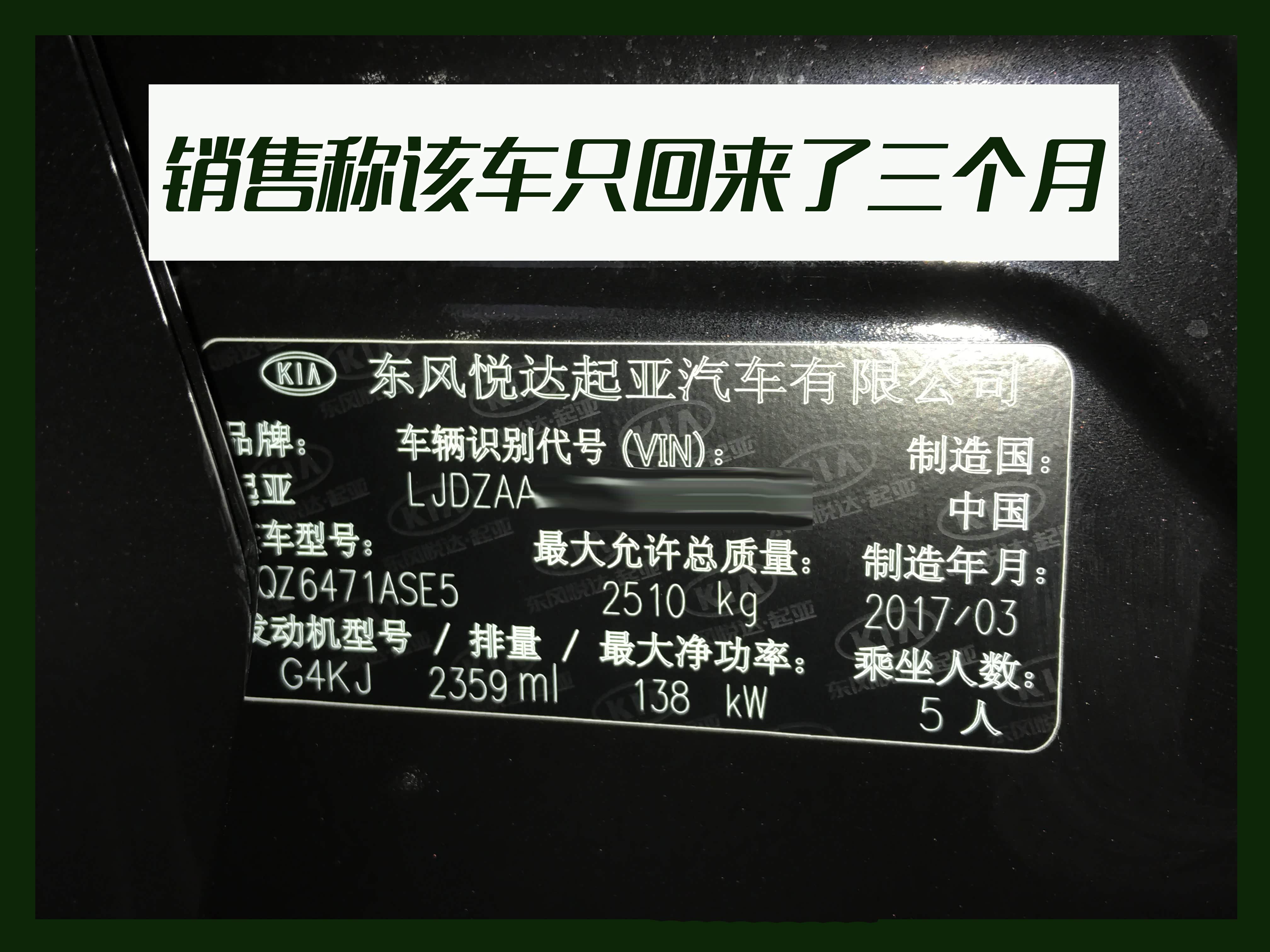 销售拍着胸脯信誓旦旦的说,放心,我们家这批车才回来三个月,您不用担心有这样的问题!