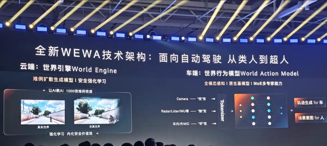 华为提出的WEWA架构分为云端和车端两部分。云端“世界引擎”通过生成模型模拟极端场景,密度可达真实世界的千倍,帮助系统提前训练罕见情况;车端“世界行为模型”采用多专家混合架构,实现多模态感知与精准场景调用。这种设计让车辆在面对复杂交通环境时,能更快速作出反应,并降低极端情况带来的安全风险。对用户来说,WEWA的优势是提升通行效率,降低急刹频率,让驾驶过程更平顺。