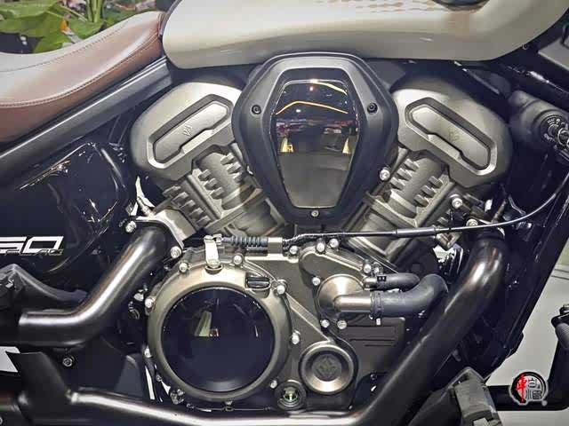 动力系统是黑旗950的灵魂所在。搭载了一台948cc的V型四缸水冷DOHC四气门发动机,这是一个极其大胆的选择。最大马力108.8匹,最大功率达80kW/10000rpm,最大扭矩85Nm/8000rpm。动力输出特性与传统巡航车注重低扭完全不同,拉高转才能爆发出全部潜力,极速可达190km/h,零百加速仅需3.8秒。