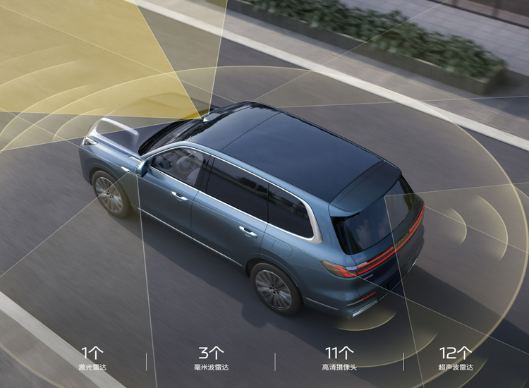 智驾方面银河M9也不落下风,除低配两款版本外,其余均搭载车顶激光雷达,内置吉利千里浩瀚H5智驾方案,匹配英伟达 Orin-Y智驾芯片,拥有双目摄像头加持,可实现城市/高速领航辅助、遥控泊车、记忆泊车、循迹倒车等,基本能满足大多数用户对智驾功能的需求。