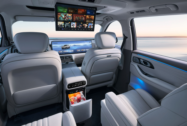 如今的家用“奶爸车”注重的是冰箱、彩电、大沙发,这些功能吉利银河M9都有,中高配车型搭载了9.1升冷暖箱,后排配备17.3英寸3K吸顶屏,第一、第二排座椅均支持座椅加热、座椅通风、座椅按摩,第三排座椅支持加热,后排拥有小桌板,支持座椅电动放倒等,全系标配空调温度分区控制、27喇叭扬声器、主驾头枕音响等。