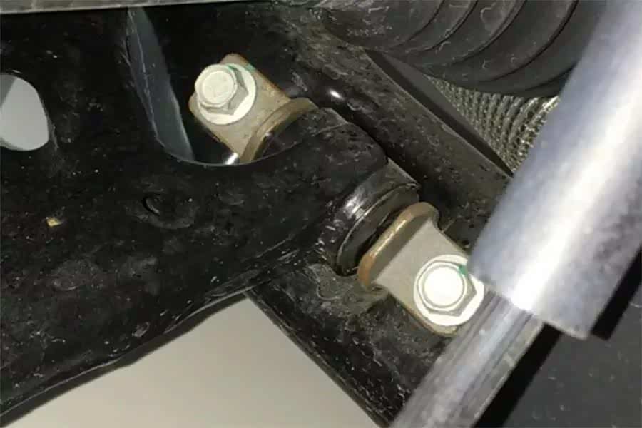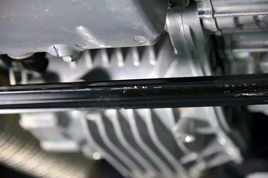 虽然说XT5的底盘前端有一道防护梁,能够保护发动机油底壳和变速箱油底壳,但是这个梁比较单薄,能否承受住比较大的冲击力,比较难说。目前来看,这根小横梁上,已经出现了不少的撞击痕迹了。