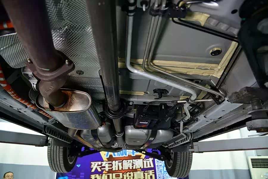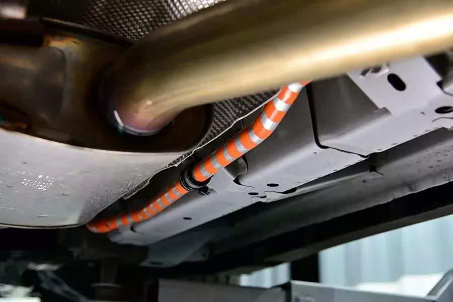 虽然排气管前段有隔热,但是底盘没有一丝一毫的喷涂或装甲,还不如长城的选择性喷涂。几乎所有管线都暴露在外,包括动力电池输电线这种比较重要的高压线。天啊!这是几十万的凯迪拉克么?
