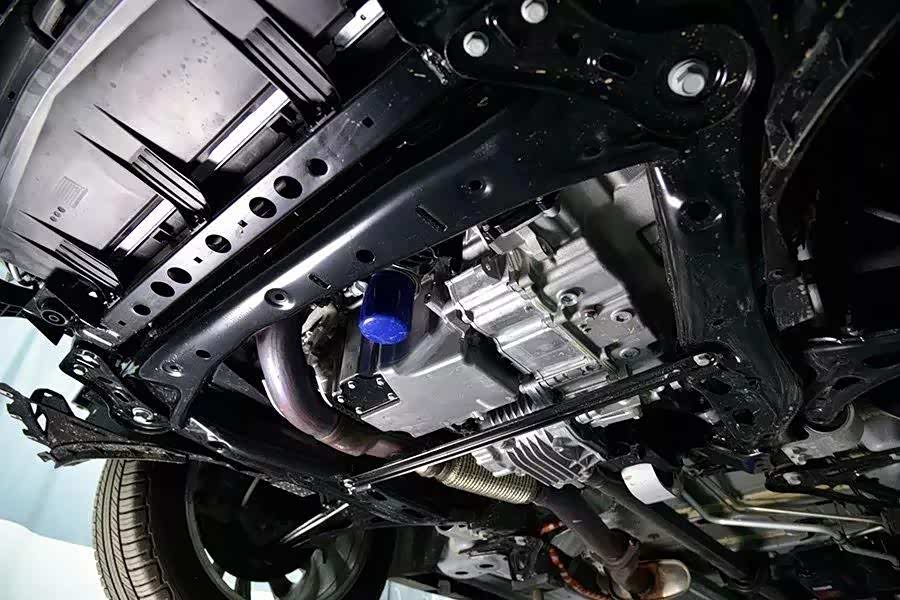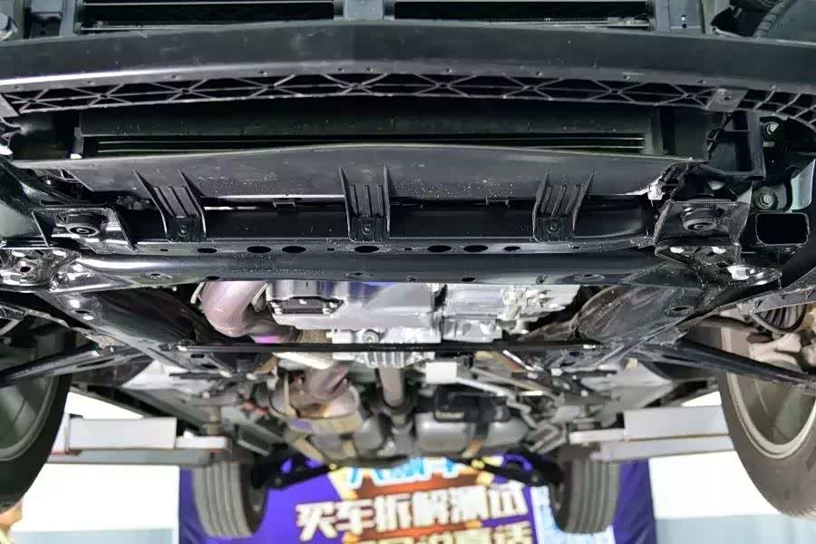 全框式前副车架在这个级别的SUV中比较常见。在这个位置能够更清楚的看到,油底壳下方有一个横向拉杆,提高车身刚性。