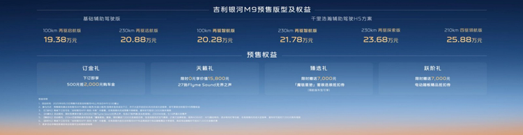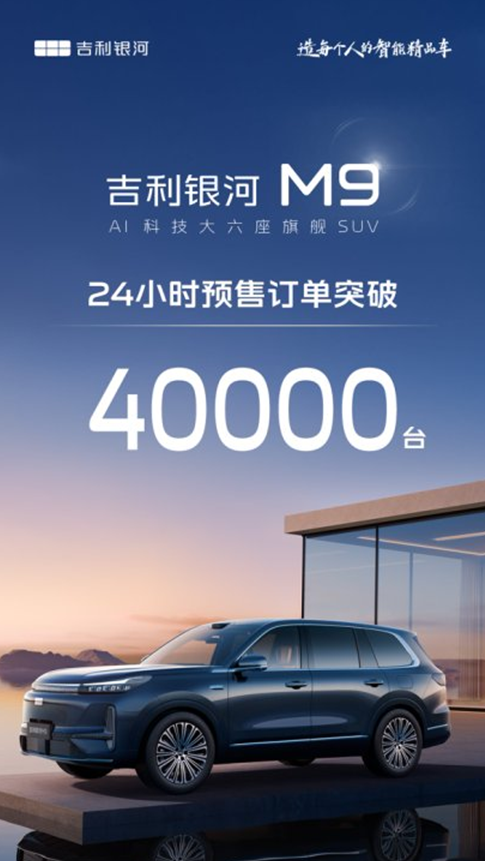 8月23日,吉利银河旗下首款"AI科技大六座旗舰SUV" 银河M9(参数|询价)正式开启全球预售,起售价19.38万元。据官方披露,新车预售首日24小时内订单量突破4万辆。这一数据不仅刷新了20万级SUV市场的预售纪录,更引发行业对"大六座SUV价值标准"的重新审视。作为吉利银河达成百万销量后推出的首款战略车型,银河M9究竟凭什么在短时间内获得市场认可?答案藏在产品硬实力中。