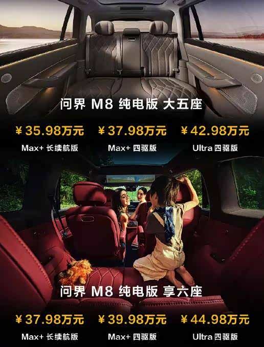 在问界的产品上,我们同样能找到从“满足需求”变为“创造需求”的案例,但更难得的是,问界M8“用体验简化SKU,用场景丰富SKU”,从而让问界M8成为了目前唯一可以同时提供纯电+增程,以及同时可以提供五座+六座的高端新能源SUV,把选择权,留给用户。