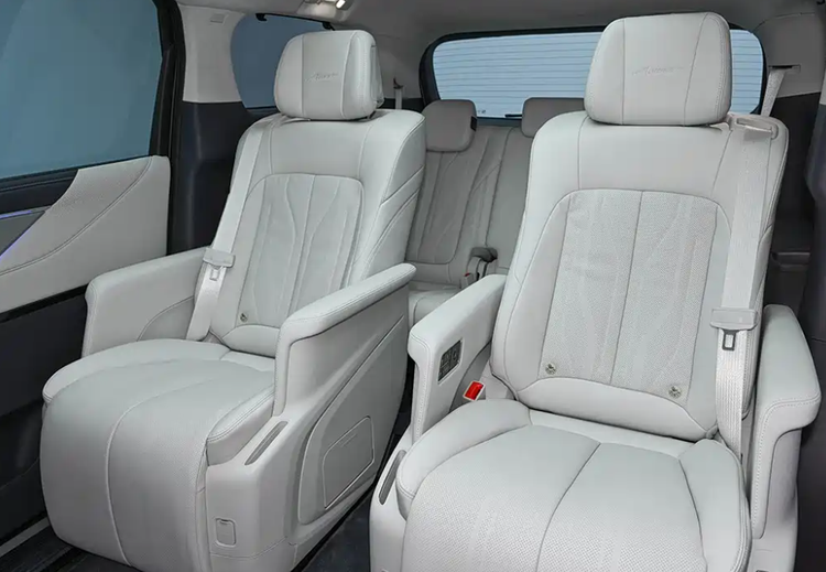 - 二排航空座椅:全系标配 Nappa 真皮包覆,触感比普通真皮细腻 30%,表面采用 “打孔透气工艺”,夏季通风不闷汗;新增 “电动前后调节”(调节范围 15cm)+“环抱式全域加热”—— 加热范围覆盖座椅坐垫、靠背、侧翼,冬季上车 3 分钟内即可升温至 28℃,比传统 “局部加热” 更温暖;还保留老款的电动腿托(最长延伸 20cm)、按摩功能(8 种模式),长途乘坐 1 小时后,腰背疲劳感能减轻 60%,商务接待时客户体验拉满。