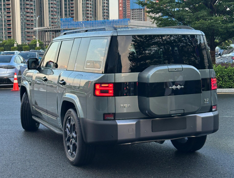 两侧方形尾灯,点亮后是双 “L” 形灯组,和前脸呼应,中间同样有熏黑饰条贯穿,晚上亮起来特别好看。另外,这车接近角 24°、离去角 25°、离地间隙 190mm、涉水深度 600mm,通过性很不错,一般的烂路根本不在话下。