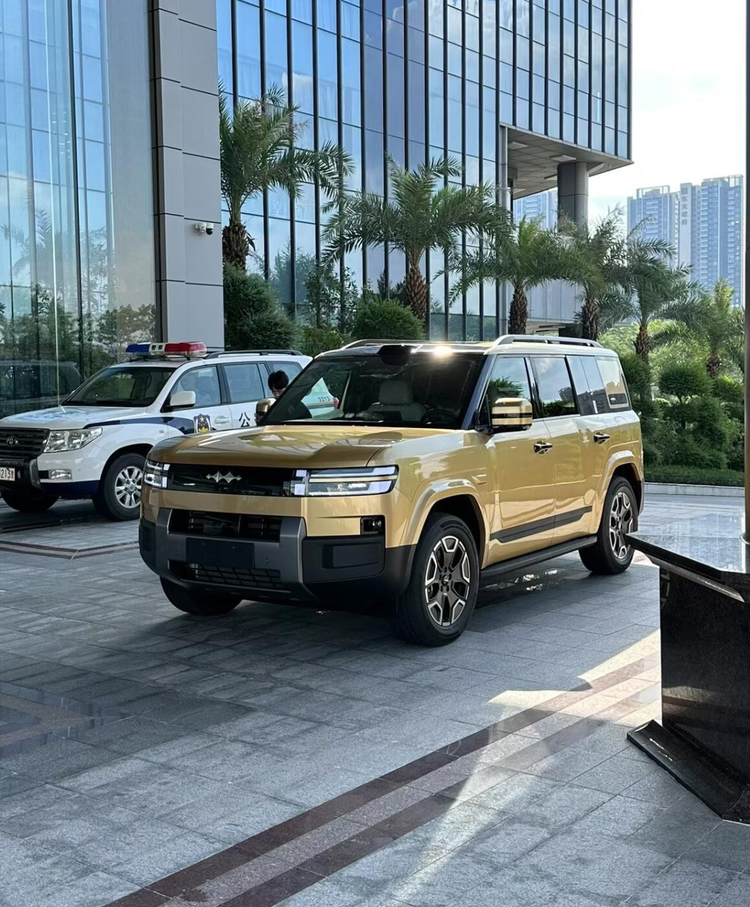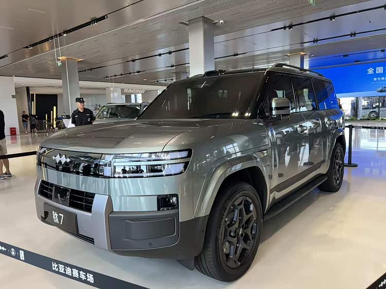先瞧瞧这外观,方程豹钛 7 定位中大型 SUV,采用承载式车身和大五座布局。前脸设计方正又饱满,还是封闭式的。两侧双层 LED 大灯组,中间用熏黑饰板连着,再加上会发光的 logo,科技感一下子就出来了,晚上开在路上,辨识度绝对杠杠的,视觉冲击力也超强。底部越野风格的熏黑前包围,加了 “H” 型枪灰色饰件,硬派气息十足。