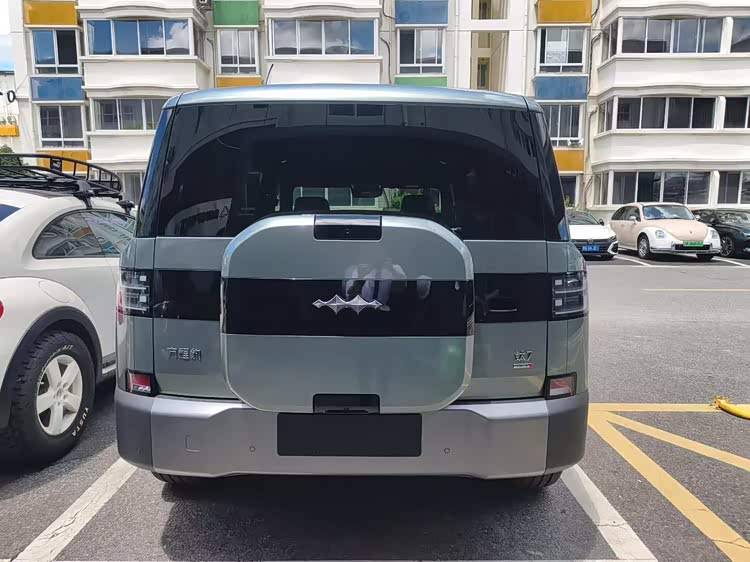 车尾造型很平直,侧开式尾门,一看就是硬派越野的范儿。后包围有大面积枪灰色饰件,力量感更强了。它还有钛系列经典的 “小书包”,其实就是 32.5L 方舟尾舱,再加上 970L 的后备箱,后舱容量超过 1000L,平时出去自驾游,装再多东西都没问题。