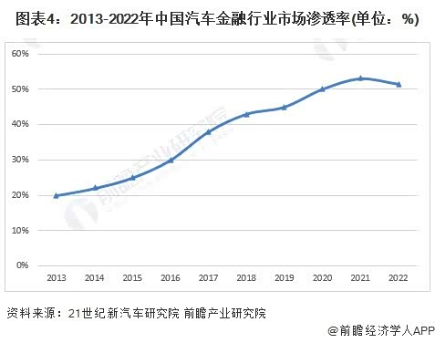 近年来,随着汽车金融市场参与者的多元化,我国汽车金融渗透率(使用金融工具购买汽车数量/汽车总销量)逐年提升。据21世纪新汽车研究院的数据,我国汽车金融渗透率从2013年的20%大幅提升至2022年的51.5%,但相较于发达国家70%-80%的汽车金融渗透率,我国汽车金融渗透率仍有较大提升空间。