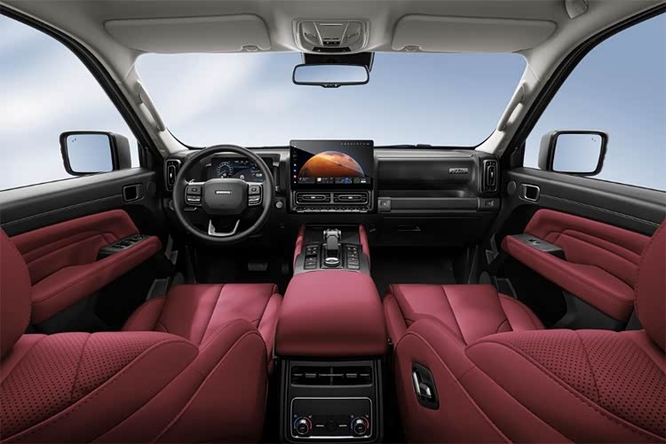 更值得关注的是内饰的 "熔岩红" 设计。不同于传统越野车的沉闷色调,这种取自火山熔岩与东方朱砂的配色,将力量感与温润感巧妙融合。座椅与中控扶手的红色软质包裹,搭配如地脉纹理的缝线,既避免了红色的浮夸,又为座舱注入了生命力。当父亲握着方向盘时,感受到的是掌控越野的力量;当母亲带着孩子坐在后排时,触摸到的是居家般的柔软。这种设计语言的转变,标志着硬派越野从 "自我表达" 向 "家庭共鸣" 的价值跃迁。