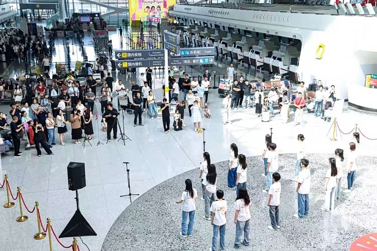 近日,北京大兴机场联合首都图书馆的 “暑期音乐节” 第六场 “童声悦旅途” 演出,在机场航站楼四层开演,北京天使童声合唱团以清澈童声为旅客带来愉悦音乐体验。