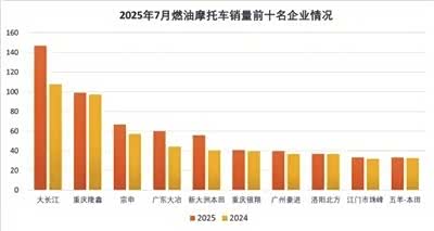 从企业表现看,头部企业市场集中度进一步提升。1-7月,燃油摩托车销量前十名企业(集团)合计销量达599.71万辆,占燃油摩托车总销量比重超56%。大长江以145.94万辆销量位居榜首,隆鑫、宗申紧随其后,分别销售98.53万辆和64.81万辆。电动摩托车市场同样呈现集中趋势,雅迪科技集团以61.40万辆销量领跑市场,浙江绿源、宗申分别以26.57万辆和26.13万辆位列二、三位。