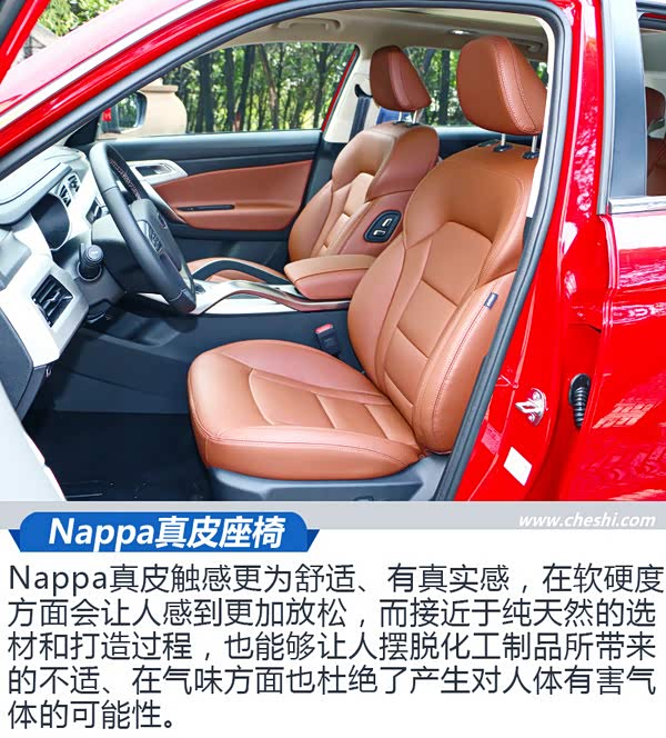 Nappa真皮触感更为舒适、有真实感,在软硬度方面会让人感到更加放松,而接近于纯天然的选材和打造过程,也能够让人摆脱化工制品所带来的不适、在气味方面也杜绝了产生对人体有害气体的可能性。