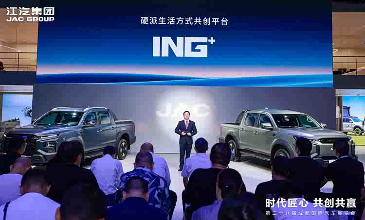 2025年8月29日,2025成都国际车展盛大开幕。时代匠心,共创共赢!江汽集团携多款车型重磅登场,江淮新能源皮卡双子星——悍途PHEV、悍途EV全球上市,15.98万元起售。江汽集团控股公司党委书记、董事长、总经理项兴初携管理团队出席,中国男子举重大级别首枚奥运金牌获得者、世界冠军刘焕华现场助阵,与来自五湖四海的媒体、合作伙伴共同见证江淮皮卡的这一重要里程碑。活动现场,江淮皮卡重磅发布用户品牌【ING+】,特邀四大领域用户成为悍途PHEV先行官,致力于与全球用户一起打造有趣味、有温度、有深度的硬派生活方式共创平台。