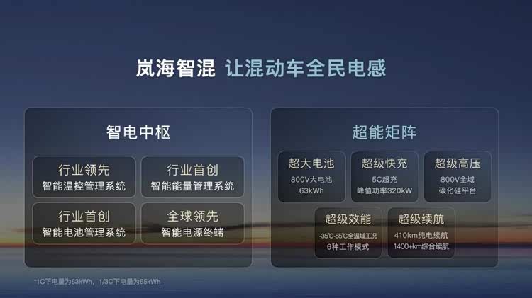 8月22日,岚图汽车全球首发智能超混800V技术岚海智混,以“智电中枢+超能矩阵”两大技术体系让混动车全程电感,用全域800V系统、5C超充以及大电量电池的综合技术方案,在中大型混动车上实现360-410公里的纯电续航,超过1400公里的综合续航,以及最快12分钟从20%电量充至80%的超高充电效率,从根本上解决了用户在续航与补能的焦虑,不仅完成中国新能源领域的重大技术突破,也将推动混动车型的核心价值从“节油”向“节碳”演进。