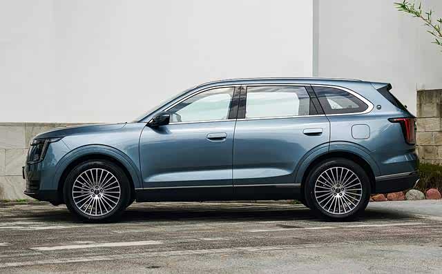车身侧面部分的整体造型很方正硬朗,车顶线条平直,带有镀铬的行李架。车窗使用了全框式的镀铬饰条,车门把手为半隐藏式。轮眉使用了多层式的筋线装饰,车身下包围带有隆起的筋线装饰,视觉效果很硬朗。尺寸方面,新车的长宽高分别为4810/1930/1705mm,轴距为2820mm。