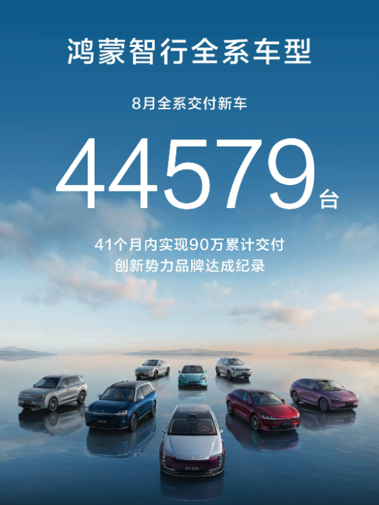 根据上个月销量数据统计,鸿蒙智行以 44579 辆的月交付量、全系累计突破 90 万辆的成绩,再次刷新新势力品牌达成速度纪录。