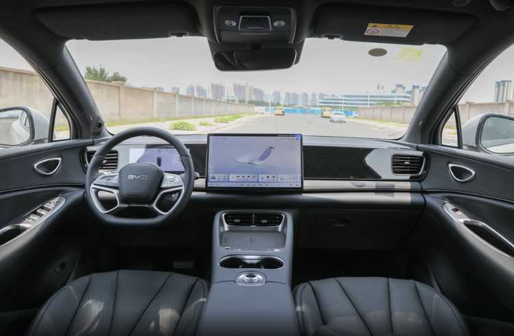 座舱内部,海狮06EV的家族气息还是很明显的,与竞争对手相比,这款车型为用户提供足够宽裕的乘坐空间,4810*1920*1675毫米的车身与2820毫米的轴距,已经能够满足大部分普通消费者对车辆空间的需求。而且这款车型不仅为用户提供757升(可扩展到1630升)的行李舱空间,还有142升的前部行李舱空间,载物能力足够优秀。
