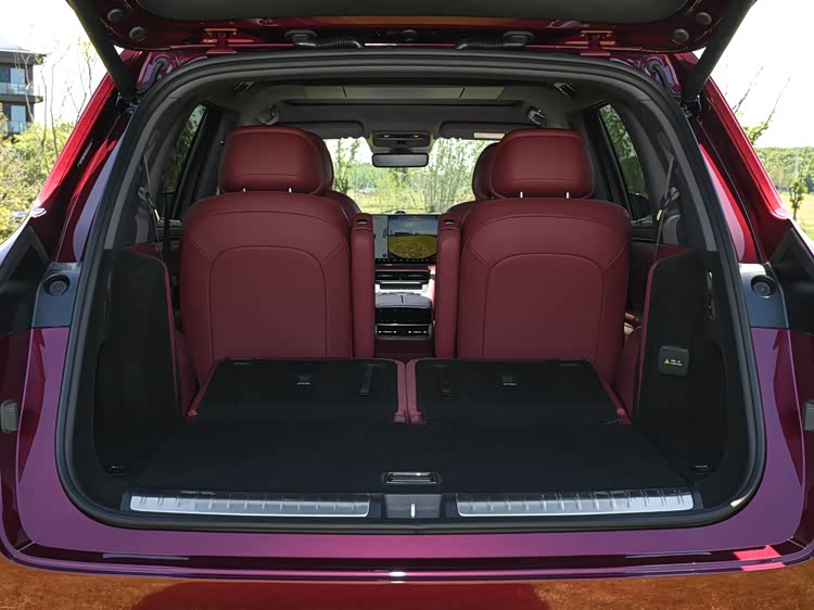 纯电版配备容积145L前备厢,支持Knock-Knock双击开启,五座版超⼤箱容积850L,⼆排放倒可拓展⾄ 2145L。六座常规状态容积312L,第三排放倒可拓展⾄1136L。