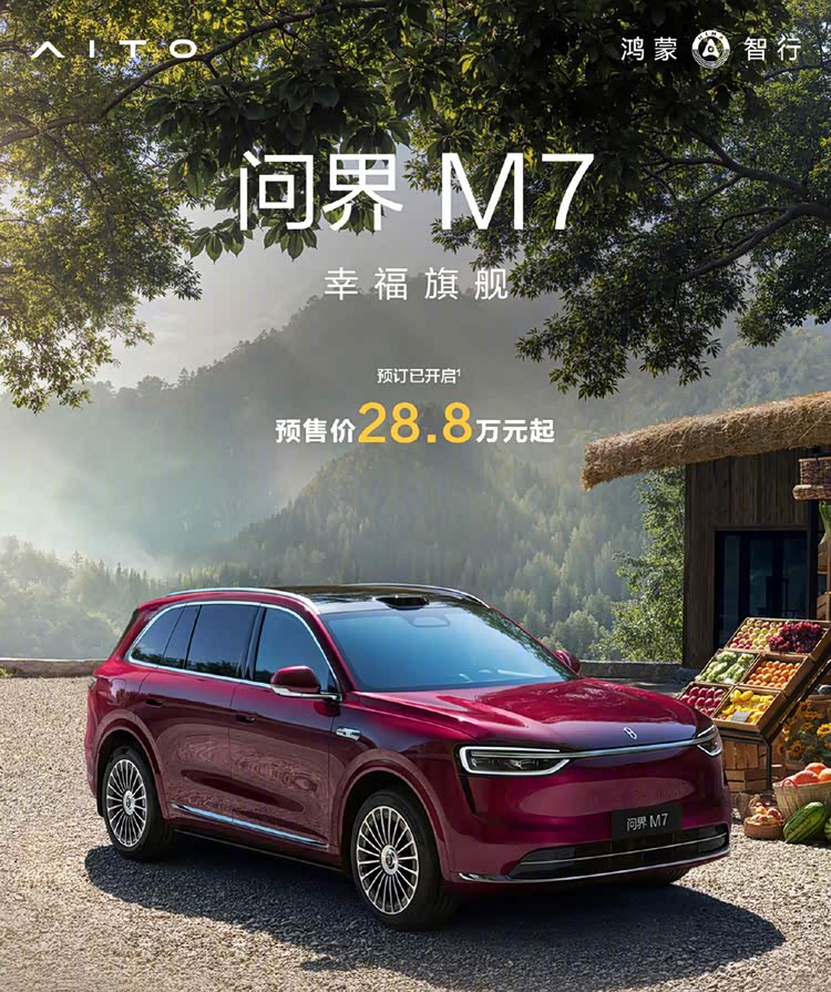 9月5号,全新 问界M7(参数|询价)开启预订,增程版预售价为28.8万-34.8万元起,纯电版为32.8万-36.8万元起,新车将于9月23日正式上市。作为换代车型,全新问界M7基于全新平台打造,采用和问界M8/M9相同的家族风格,提供5/6座,动力上提供增程和纯电选择。