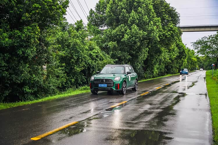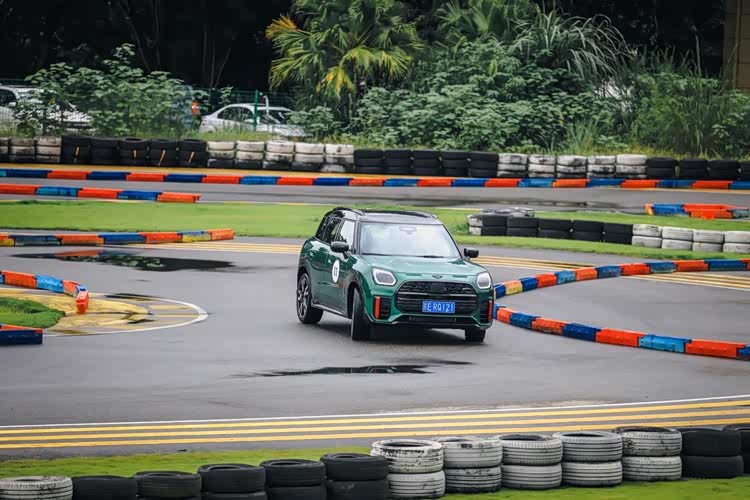 值得一提的是,由于活动当天一直都在下雨,本以为车身较长的MINI JCW Countryman大概率会出现频繁打滑的现象,结果没想到,它全系标配的ALL4智能四驱技术,不仅让我在撒欢玩水的时候,就算是在相对激烈的赛道驾驶环节也能较为从容地把握手中的方向盘。