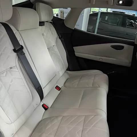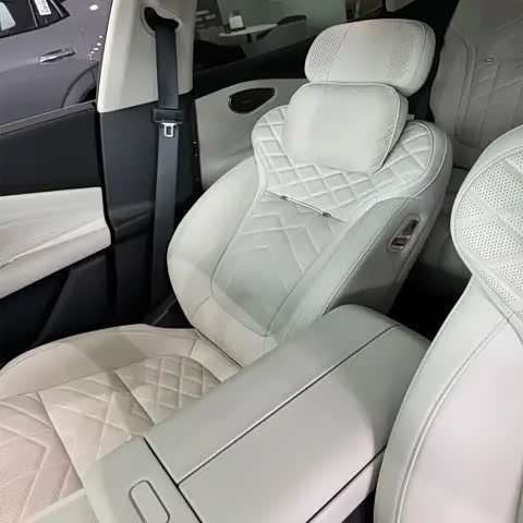 舒适性配置方面,领克10 EM-P也很下本。全系座椅采用NAPPA真皮包裹,靠背有菱形格纹和打孔工艺,前排靠背后还绣有“The Next Day”字样,细节到位。后排座椅支持电动调节,并具备通风、加热和按摩功能(中配需选装,顶配标配)。副驾靠背上的小桌板是全系标配,承重达15公斤,办公或吃东西都很稳。