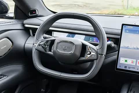 中控台最显眼的是15.4英寸悬浮大屏,搭配12.66英寸全液晶仪表和25.6英寸AR-HUD抬头显示,驾驶信息一目了然。方向盘是双辐造型,换挡机构采用了怀挡设计,为中控区域腾出了更多储物空间。车机系统搭载Flyme Auto 2.0,全系标配高通骁龙8295芯片,操作流畅度很高,基本没有卡顿感。