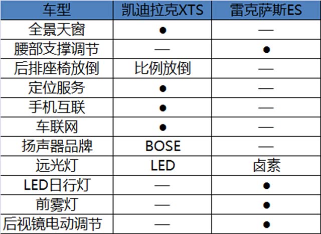 两者的不同之处在于XTS技术型比ES200精英版多了全景天窗、方向盘电动调节、方向盘换挡、主动降噪以及车联网功能。而ES200精英版的腰部支撑调节、LED日行灯、后视镜电动折叠。可以说两车配置各有千秋,都能满足日常用车需求。