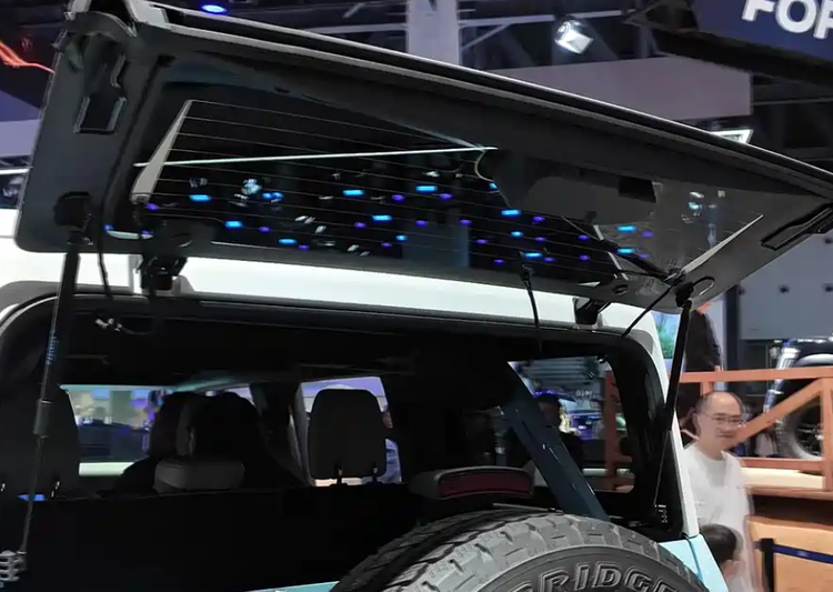 烈马 1966 的细节设计,既保留了越野车的实用性,又透着 “不随大流” 的巧思。尾门采用上下分体开启方式:上半部分是传统掀开门,下半部分则为侧开门,两者之间留有精准的公差缝隙,开关时互不干涉。不过关门顺序有讲究 —— 必须先关上门,再关下侧门,因为全尺寸外挂备胎会挡住上半部分尾门的闭合路径。这种设计看似复杂,却解决了 “大备胎遮挡尾门” 的痛点,同时比一体式尾门更灵活,拿取小件物品时无需完全打开尾门,实用性拉满。