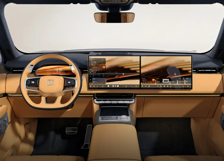 坐进车内,档次感扑面而来。中控屏与副驾娱乐屏组成的一体式双联屏,不仅尺寸可观,显示效果和流畅度也十分出色,为车内增添了浓厚的科技氛围。新车搭载千里浩瀚 H5 智驾方案,为出行提供了智能安全保障。采用 6 座布局,充分考虑了家庭出行的需求。高配版本更是贴心地配备了后排吸顶屏、后排小桌板、车载冰箱等,让每一次出行都成为一种享受。