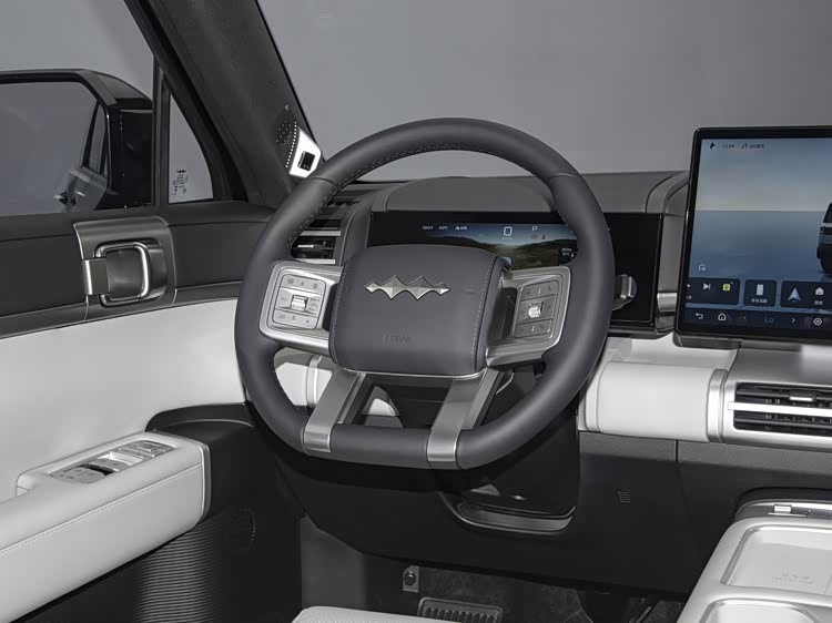 车尾部分同样延续硬派风格,双层尾灯设计不仅美观,更在夜间行车时提供出色警示效果。外挂储物箱与侧开尾门,既满足户外出行装备携带需求,又增添实用属性。车身同色轮眉、方形外后视镜以及固定侧踏等细节,从各个角度强化整车越野视觉风格,仿佛在无声宣告它的越野实力。
