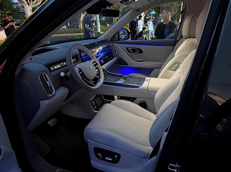 银河M9在进入车内时,采纳了“三进大宅”的设计哲学,并通过独特的空间设计达到了“三排平权”的效果”。该车型采纳了2+2+2的六座设计,两排独立的座椅都配备了可折叠的桌板、9.1L的智能冷暖冰箱和17.3英寸的后排娱乐屏幕,旨在为乘客提供类似行政舱级的旅行体验。第三排座椅的设计采用了340mm的全排等高坐姿,支持150°的躺倒角度,并配备了0.15m2的“勃朗峰舷窗”和独立的充电口,这彻底改变了人们对传统三排“应急座”的刻板印象,这也体现了中国人的独特设计理念。
