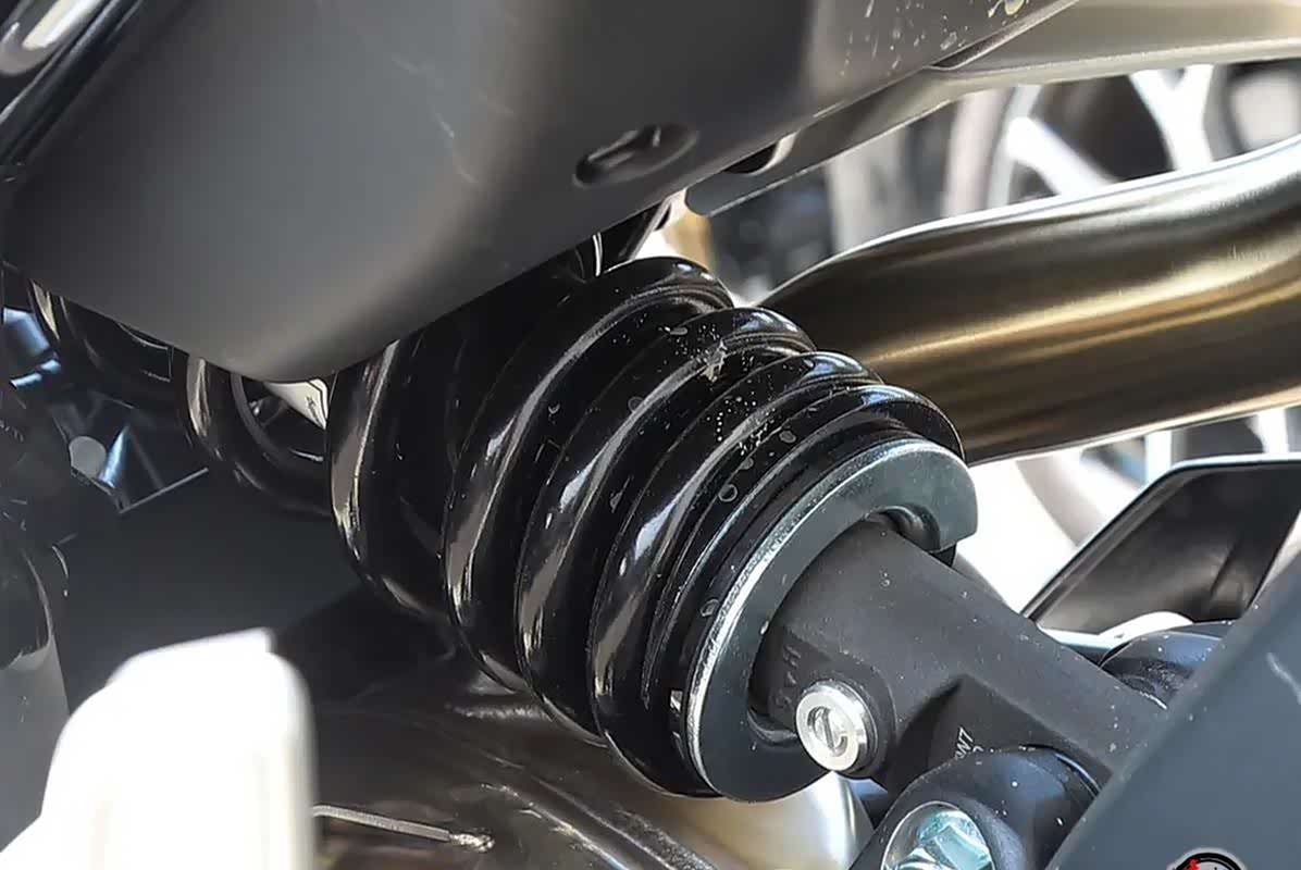 前悬采用的是KYB43mm倒置叉,有8段预载可调,能根据不同的路况和骑行需求进行调整,侧倾抑制提升了40%,过弯的时候更稳。后悬是多连杆结构中置减震,配合前悬,让车子的整体舒适性和操控性都有很好的表现。