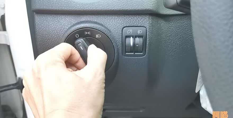 以大众集团旗下车型为代表。大灯开关是一个位于仪表台左侧的大型旋钮。