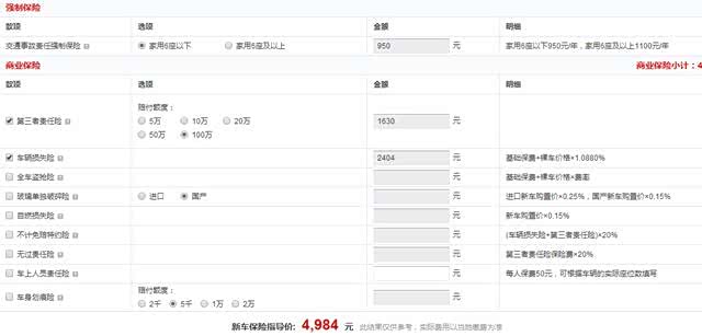 首先是保险费用,在购车之后,第一笔用车费用就是保险费,领克01的售价为15.88到22.08万之间,目前最走量的车型就是两驱版本的型Pro,这款车的售价为17.88万,其中交强险为950元,第三者责任险选择100万的情况下保费为1630元,车损险为2404元,新车的保险费用总计为4984元,当然,如果再选择其他的险种,那么保险费用也会相应增加。